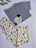 ست تیشرت شلوار جنس نخ پنبه % فری سایز صورتی طرح خرسی طوسی طرح روباه